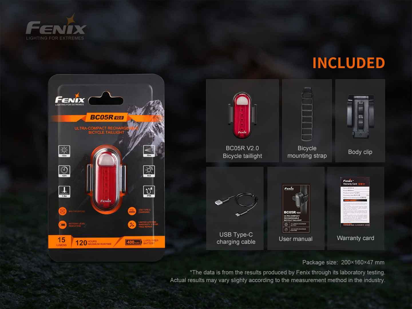 • 1 x Fenix BC30 v2.0 Bike Light + BC05R V2.0
