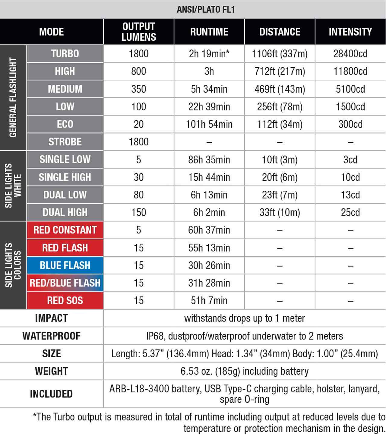 - Powered by a 3400mAh rechargeable battery (included) and also compatible with 2 × CR123A batteries